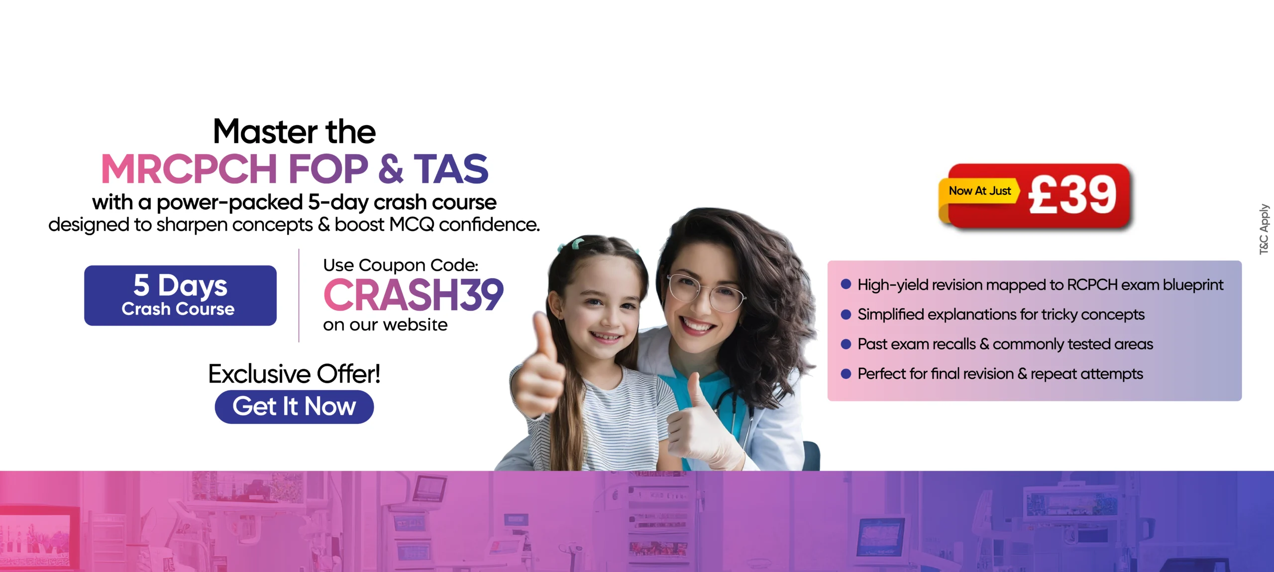 MRCPCH FOP/TAS is one of the three theory exams you must be cleared to achieve Membership of the Royal College of Paediatrics and Child Health. Ensure your success with our MRCPCH FOP/TAS courses.